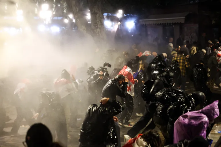 وبحسب وكالة “فرانس برس”، احتشد المتظاهرون في ساحة الحرية وسط تبليسي، ملوحين بأعلام جورجيا والاتحاد الأوروبي، ضمن ما أطلق عليه المنظمون اسم “التجمع الوطني”. وسار المحتجون نحو القصر الرئاسي في مسيرة ضخمة، قبل أن تحاول مجموعات منهم اقتحام المقر، ما أدى إلى تدخل أمني عنيف استخدمت خلاله الشرطة الغاز المسيل للدموع وخراطيم المياه لتفريقهم.